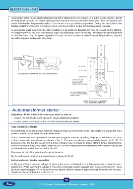 transformer. While starting, the voltage is reduced by selecting suitable tappings from the auto-transformer. Once