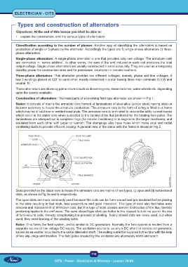 production of single or 3-phase by the alternator. Accordingly the types are 1) single-phase alternators 2) three-