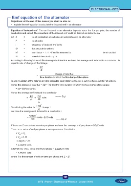 Equation of induced emf: The emf induced in an alternator depends upon the flux per pole, the number of