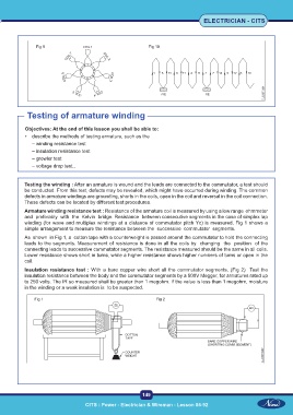 Testing the winding : After an armature is wound and the leads are connected to the commutator, a test should