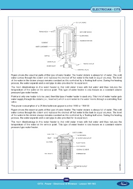 Figure shows the essential parts of this type of water heater. The heater cistern is always full of water. The cold