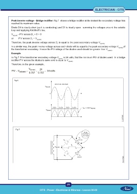 Peak inverse voltage - Bridge rectifier: Fig 7 shows a bridge rectifier at the instant the secondary voltage has