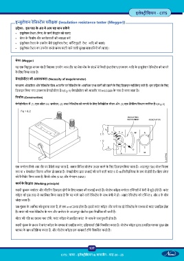 मेगोहोमीटर म (1) एक छोटा DC जनरेटर, (2) उ रेिज स को मापने के िलए कै िल ेटेड मीटर और (3) एक िकं ग िस म शािमल है। (Fig 2)