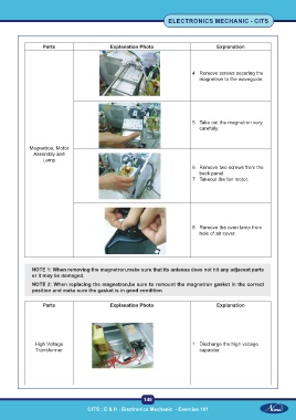 NOTE 1: When removing the magnetron,make sure that its antenna does not hit any adjacent parts