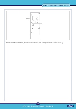ELECTRONICS MECHANIC - CITS Result: Thus the dismantle of given microwave unit was done and replaced faulty parts successfully. 153 CITS : E & H - Electronics Mechanic - Exercise 161