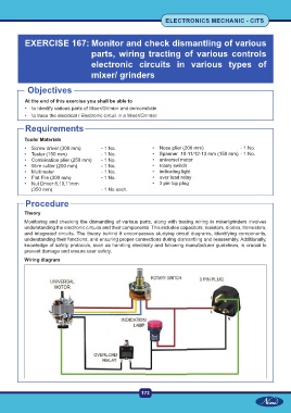 • to trace the electrical / Electronic circuit in a Mixer/Grinder.