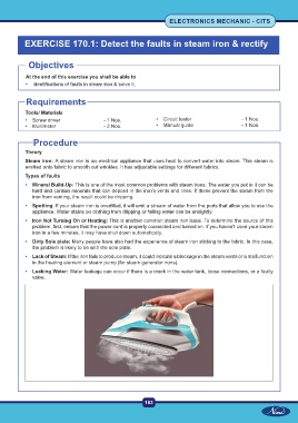 EXERCISE 170.1: Detect the faults in steam iron & rectify