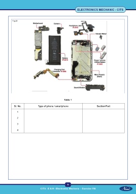 ELECTRONICS MECHANIC - CITS Fig 20 Table 1 Sl. No. Type of phone / smartphone Section/Part 1 2 3 4 5 CITS : E & H - Electronics Mechanic - Exercise 118 CITS : E & H - Electronics Mechanic - Exercise 118