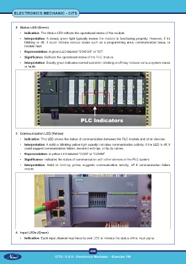 • Indication: This LED shows the status of communication between the PLC module and other devices.