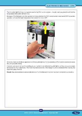 Because of the third pilot light, the operator will know whether the PLC control system was turned OFF by another
