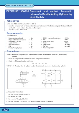 • select the components to construct and control automatic return of the double acting cylinder by Limit Switch