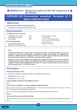 its polarity before using it. Usually six terminals from the three phases of an induction motor are
