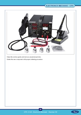 ELECTRONICS MECHANIC - CITS Clean the surface gently and remove unwanted particles. Solder the new component with proper soldering procedure 59 CITS : E & H - Electronics Mechanic - Exercise 134