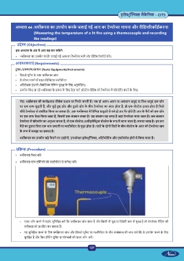 • थम कपल का उपयोग करके जलाई गई आग का टे रेचर माप और रीिडंग रकॉड कर ।