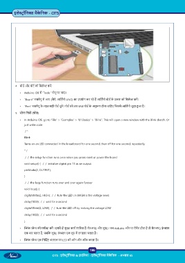 • ंक े च की समी ा कर । इसम दो मु काय शािमल ह : सेटअप() और लूप()। जब Arduino ऑन या रीसेट होता है तो सेटअप() फ़ं न
