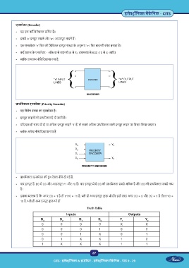 • चार इनपुट ह , D0 से D3 और आउटपुट Y1 और Y0 ह । चार इनपुट म से D3 की ाथिमकता सबसे अिधक है और D0 की ाथिमकता सबसे कम