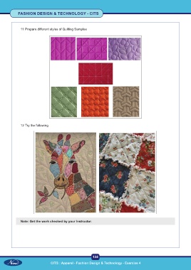 FASHION DESIGN & TECHNOLOGY - CITS 11 Prepare different styles of Quilting Samples 12 Try the following Note: Get the work checked by your Instructor. 124 CITS : Apparel - Fashion Design & Technology - Exercise 4