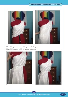 FASHION DESIGN & TECHNOLOGY - CITS 15 Make folding as per the required design as per the design. 16 Complete the draping and pin the waist and side portion. 243 CITS : Apparel - Fashion Design & Technology - Exercise 16