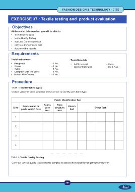 EXERCISE 37 : Textile testing and product evaluation