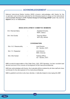 National Instructional Media Institute (NIMI) sincerely acknowledges with thanks for the