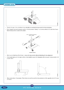 • Position the tap in the chamfered hole vertically by ensuring the tap wrench in horizontal plane.