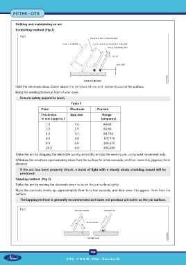 Strike the arc by dragging the electrode quickly and softly across the welding job, using wrist movement only.