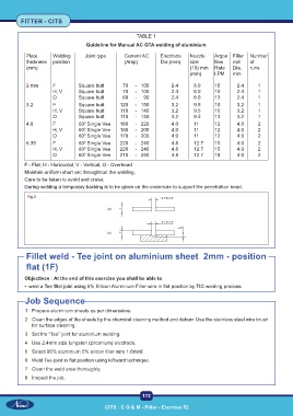 • weld a Tee fillet joint using 5% Silicon Aluminium Filler wire in flat position by TIG welding process.