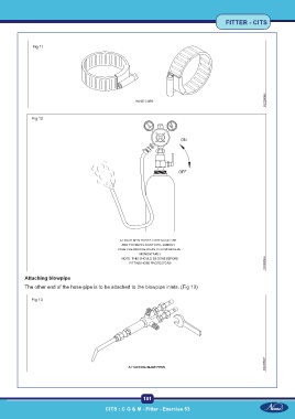 FITTER - CITS Fig 11 Fig 12 Attaching blowpipe The other end of the hose-pipe is to be attached to the blowpipe inlets. (Fig 13) Fig 13 181 CITS : C G & M - Fitter - Exercise 53