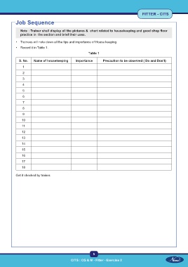 S. No. Name of housekeeping Importance Precaution to be observed ( Do and Don’t)