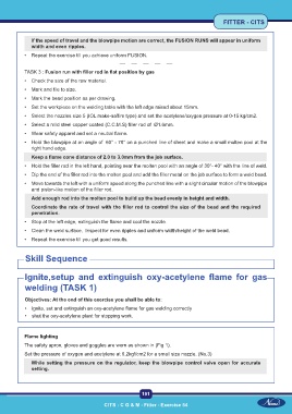 • ignite, set and extinguish an oxy-acetylene flame for gas welding correctly