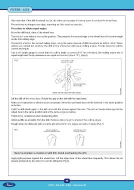 Rough down the drill point with a coarse grit wheel when the edges are badly chipped.(Fig 7)