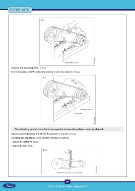 Move the pulley with the adjusting screws to alter the tension. (Fig 2)