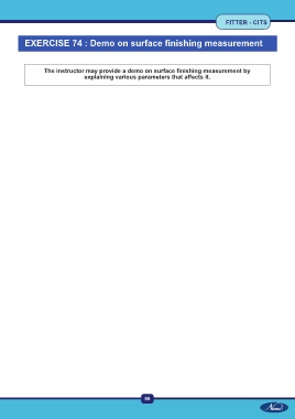 FITTER - CITS EXERCISE 74 : Demo on surface finishing measurement The instructor may provide a demo on surface finishing measurement by explaining various parameters that affects it. 99