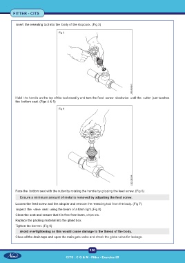 Face the bottom seat with the cutter by rotating the handle by gripping the feed screw. (Fig 6)