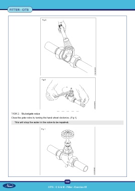 FITTER - CITS TASK 2 : Sluice/gate value Close the gate-valve by turning the hand wheel clockwise. (Fig 1) This will stop the water in the valve to be repaired. 132 CITS : C G & M - Fitter - Exercise 85