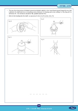 • Drive in the bearing into the shaft, by applying the force by the press. (Fig 16)