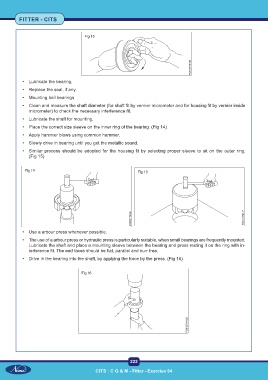 • Drive in the bearing into the shaft, by applying the force by the press. (Fig 16)