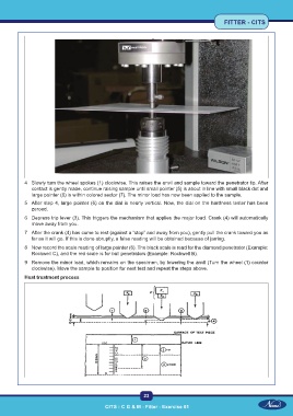9 Remove the minor load, which remains on the specimen, by lowering the anvil (Turn the wheel (1) counter
