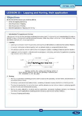 LESSON 23 : Lapping and Honing, their application