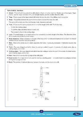 1 Shank : This is the driving end of the drill which is fitted on to the machine. Shanks are of two types. Taper