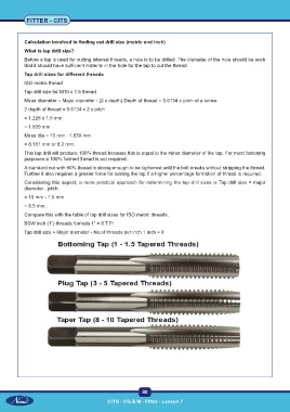 Before a tap is used for cutting internal threads, a hole is to be drilled. The diameter of the hole should be such