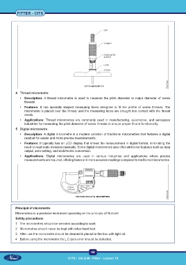 • Description: A thread micrometre is used to measure the pitch diameter or major diameter of screw