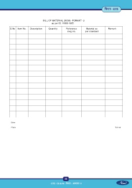 िफटर- CITS BILL OF MATERIAL (BOM) - FORMAT - 2 as per IS: 11666-1985 S.No Item No. Description Quantity Reference Material as Remark dwg no. per standard Date Place Trainer 35 CITS : CG & M - िफटर - अ ास 11