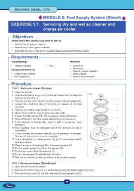 EXERCISE 5.1: Servicing dry and wet air cleaner and