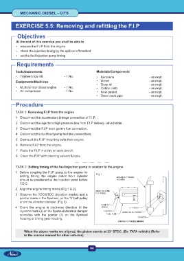 TASK 2: Setting timing of the fuel injection pump in relation to the engine
