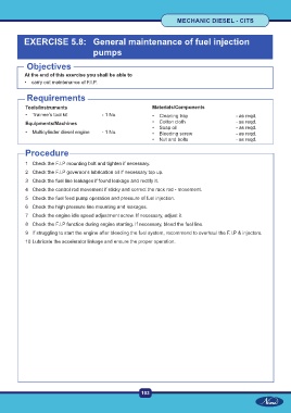 • Trainee’s tool kit - 1 No. • Cleaning tray - as reqd.