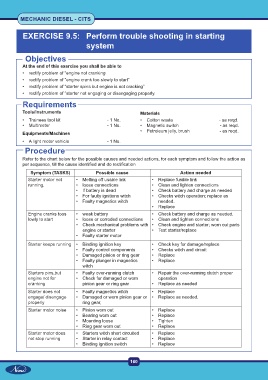 • Check mechanical problems with • Check engine and starter; worn out parts