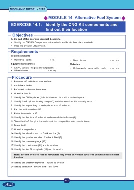 • A CNG vehicle Two post lift/four post lift • Cotton waste, waste cotton cloth - as reqd.