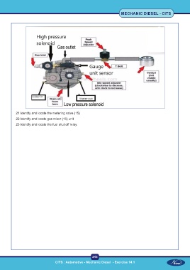 MECHANIC DIESEL - CITS 21 Identify and locate the metering valve (15) 22 Identify and locate gas mixer (16) unit 23 Identify and locate the fuel shut off relay. 213 CITS : Automotive - Mechanic Diesel - Exercise 14.1