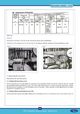 Calibration of pump/governor should be done in accordance with the respective Test specifications chart.